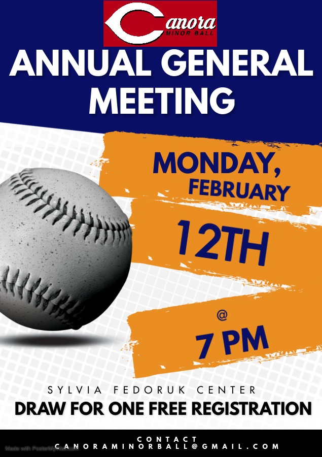 For outlook on the 2024 Baseball and Softball season, please join us at 7:00 pm @ the curling rink.